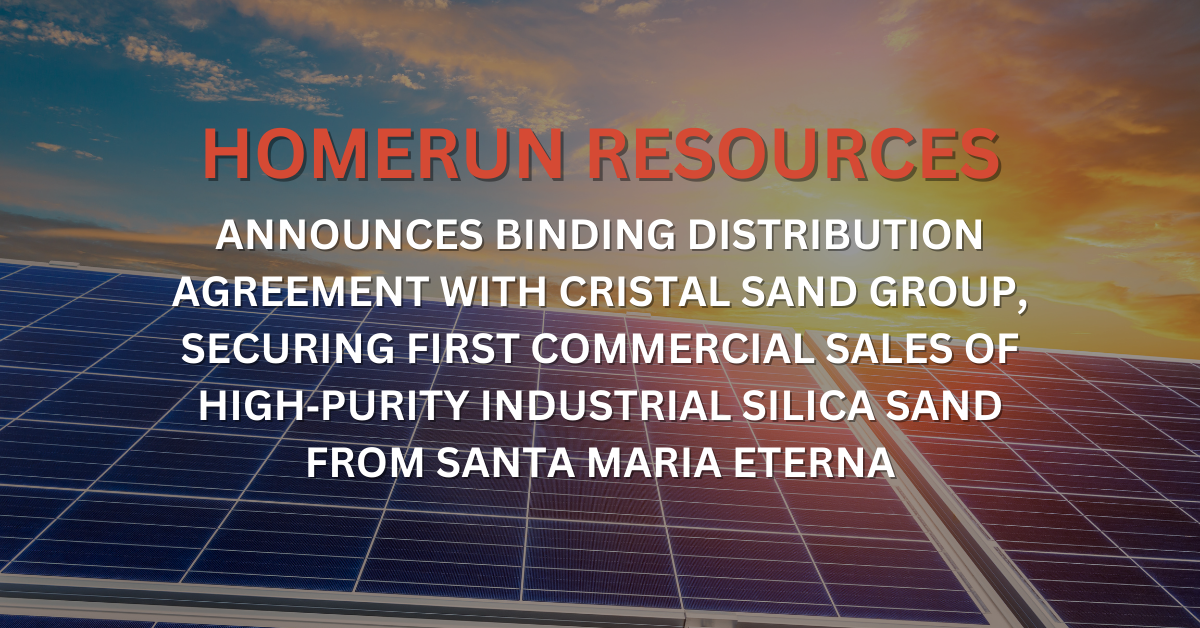 HOMERUN RESOURCES INC. ANNOUNCES BINDING DISTRIBUTION AGREEMENT WITH CRISTAL SAND GROUP, SECURING FIRST COMMERCIAL SALES OF HIGH‑PURITY INDUSTRIAL SILICA SAND FROM SANTA MARIA ETERNA